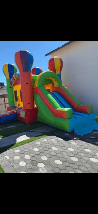 - OCCUPANCY: A maximum of 5-6 kids of equal size at one time for bounce houses, and 1 person at a time for slides is what most inflatable manufacturers recommend.